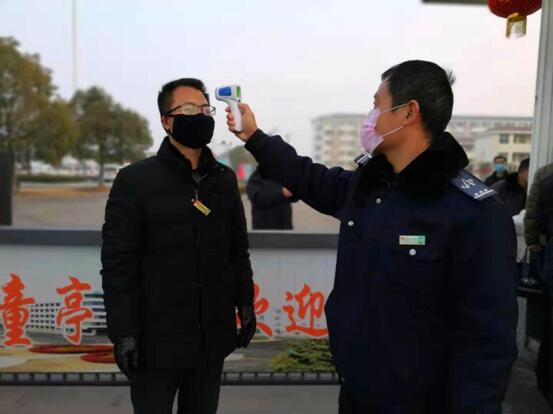 “董部長(zhǎng),請(qǐng)下車測(cè)體溫。”物業(yè)分公司部長(zhǎng)董昌軍剛把車開到該處機(jī)關(guān)大門口,就被保衛(wèi)人員楊瑞廷攔下了。“你們頂頭上司你也敢攔?”旁邊有人打趣道。“一車一檢,一人一登記、測(cè)體溫,我們是按門衛(wèi)制度辦事,堅(jiān)決不能漏過一車一人,不是假期值班人員,其他人現(xiàn)在還不讓進(jìn)呢。”楊瑞廷解釋說。