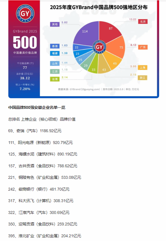 近日,GYBrand全球品牌研究院發布2025年度中國500最具價值品牌名單,淮北礦業以品牌溢價204.21億元,再次榮登榜單,位列395位。